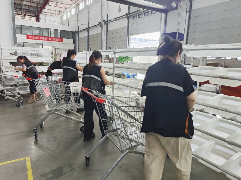緊接著的分撥環節,根據訂單要求,將商品有條不紊地進行分揀操作。