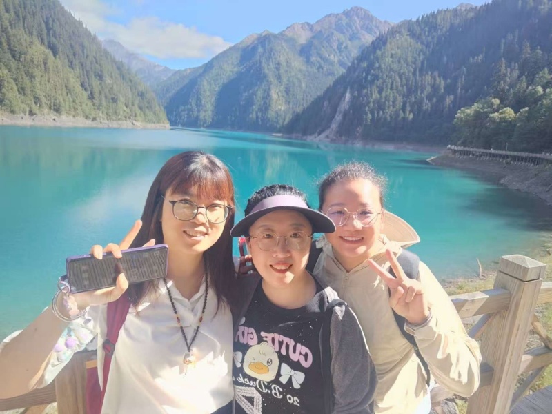 這,終于走進向往已久的九寨溝。觀光車載著大家深入溝內,沿途美景如畫卷展開——樹正群海的瀑布飛流直下,諾日朗瀑布氣勢磅礴,珍珠灘的水珠如碎玉飛濺。而五花海和長海更是讓人驚嘆,同一片水域竟能呈現鵝黃、墨綠、深藍交織的夢幻色彩。“以前只在電視上看過,親眼見到更震撼!”一位同事感嘆道。大家在棧道上漫步,呼吸著高原清新的空氣,將這份美好深深印在心底。
